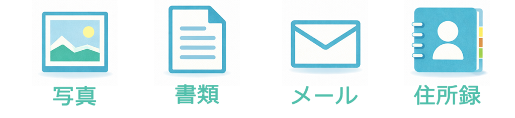 リカバリーを行うと、写真・書類・メールなどのデータは基本的に削除されます。